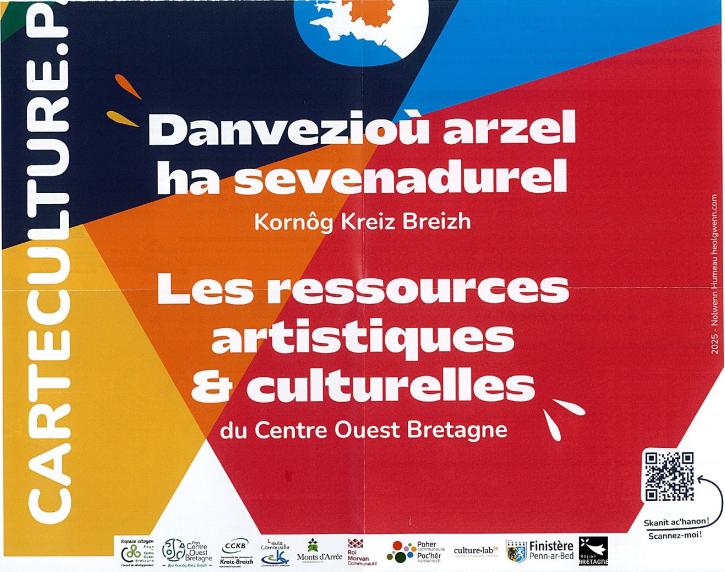Le Pays Centre Ouest Bretagne et la Commission Culture de son conseil de développement ont le plaisir de vous présenter La Carte Culture du Centre Ouest Bretagne, plateforme numérique dédiée à la découverte des acteurs (rices) et des lieux de la vie artistique et culturelle locale. Pour plus de renseignements suivre le lien : https://carteculture.payscob.bzh