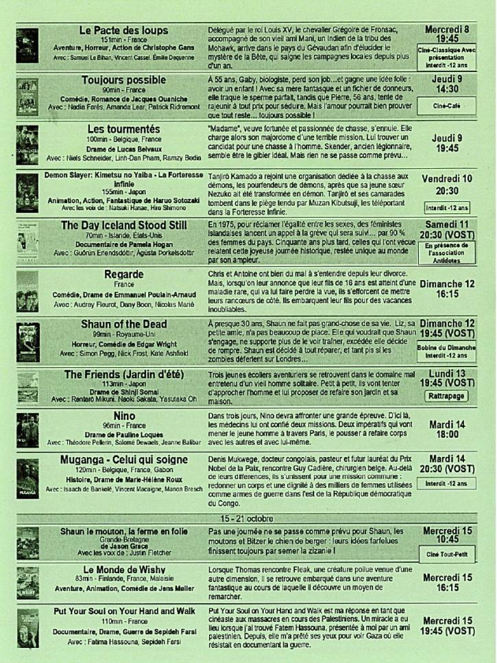 Envie d'une sortie cinéma : voici le programme pour ce mois d'octobre.