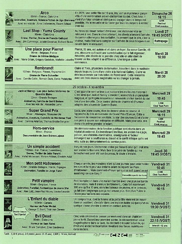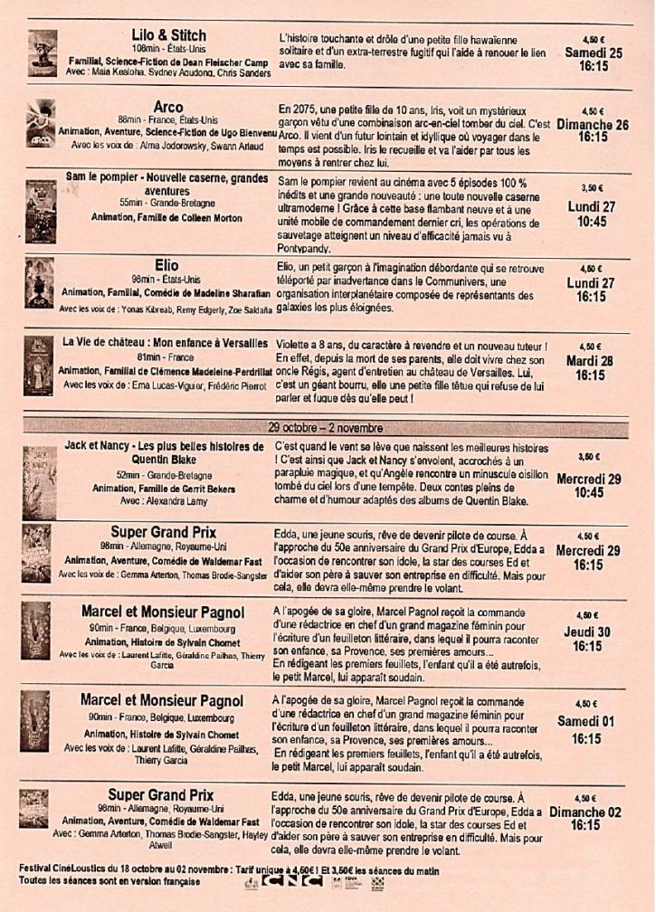 A noter le Festival CinéLoustics, cinéma jeune public à tarifs préférentiels.